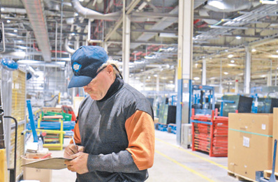 由中国福耀集团投资的位于美国俄亥俄州代顿地区南部莫瑞恩市的福耀玻璃美国有限公司汽车玻璃工厂去年10月正式竣工投产,成为全球最大的汽车玻璃单体工厂。图为一名