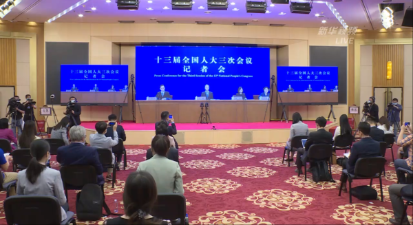 图说:5月24日下午3时,十三届全国人大三次会议在人民大会堂新闻发布厅举行记者会,邀请国务委员兼外交部长王毅就“中国外交政策和对外关系”相关问题答中外记者问。新华社
