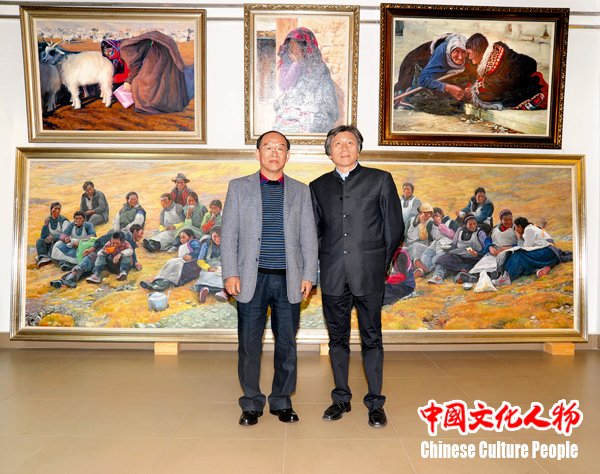 中国美术家协会副主席、中央美院院长范迪安与韩玉臣在画室合影