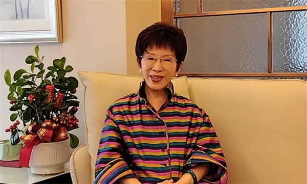 图为中国国民党前党主席、台湾中华青雁和平教育基金会董事长洪秀柱视频致辞。