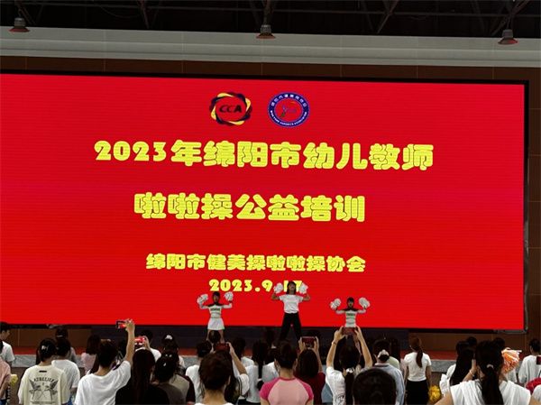 为贯彻落实《3-6岁儿童学习与发展指南》,进一步推动绵阳市幼儿啦啦操运动项目的发展,提高绵阳市幼儿教师啦啦操的执教水平及专业能力,由绵阳市健美操协会主办的《2023年绵阳市幼儿教师啦啦操公益培训》于2023年9月17日在绵阳东辰高级中学举办。