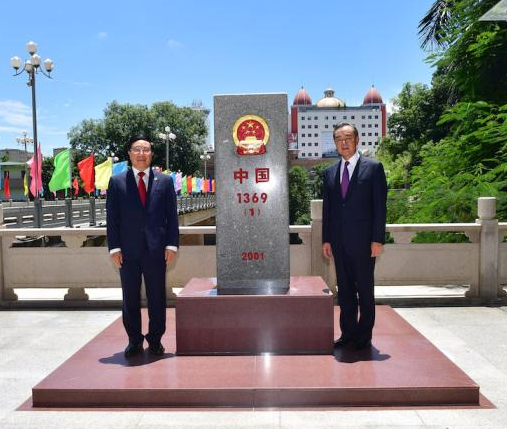 中新网广西东兴8月23日电中国国务委员兼外长王毅23日同越南副总理兼外长范平明在广西东兴出席中越陆地边界划界二十周年和勘界立碑十周年纪念活动。两国外长共同现