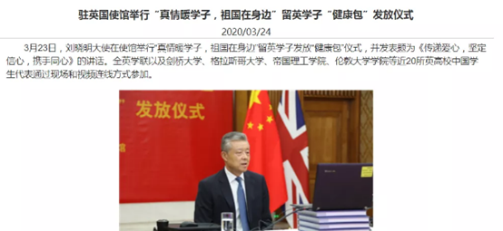 此外,中国驻英大使馆也宣布向所有留英学子发放“健康包”,其中包括所有中国籍学生(包含中小学生)、访问学者等。并以各学联为单位,建立微信互助群统一汇总需求再进行发放。具体发放时间及方式详情请参考各学联官方通知。