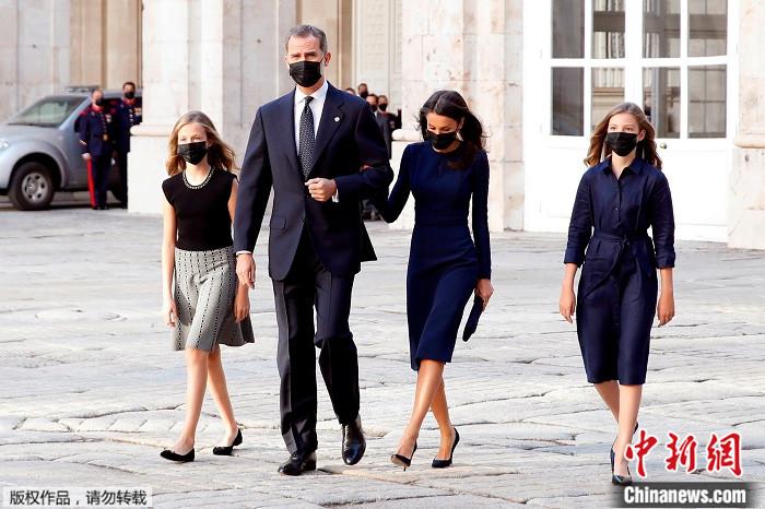 中新网7月21日电据外媒报道,16日,西班牙国王费利佩六世携妻子和两个女儿出席了国家纪念仪式,追思和哀悼新冠疫情逝者。期间,在费利佩六世致辞结束后