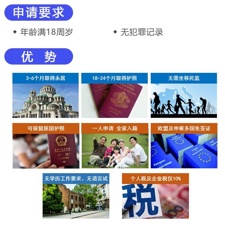 答:欧盟国家有关移民名⽬繁多,有到期必须申请延期的长期居留权、有永久居留权。但是,无论是什么居留权,亦只表明您仍是欧盟成员国以外的外国⼈,有些所谓的「永居权」还有着⼀些限制条件。仅仅持有永居权,是不可以享受持有欧盟护照所带来的巨⼤便利和欧盟福利待遇。所以欧盟永久居留权 (永居权) 和欧盟公民(护照)完全是两个概念。此外,持有永居权,即使满⾜了住在该国的居住要求,当您申请欧盟国家入籍时仍要⾯对的很⼤的语⾔挑战,必须通过很⾼⽔平的语⾔考试。⽽移民保加利亚的其中⼀个优势就是没有语⾔要求。