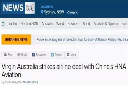 据《The Age》报道,中国最大的私人航空公司将收购澳洲Virgin航空13%的股份,Virgin航空表示该交易有助于其发展中国的市场。