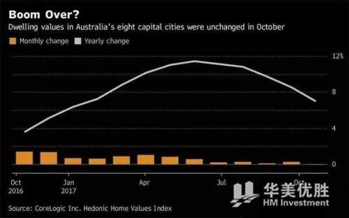 从上世纪60年代初以来,澳大利亚的房价开始一路猛涨,到今年已经连续55年上涨。然而在今年11月2日,瑞银集团(UBS)经济学家门郑重宣布,这个全球最长的房地产牛市已经终结。根据瑞银的计算,今年10月份,澳大利亚全国平均房价和悉尼、墨尔本、布里斯班、阿德莱德和珀斯五大城市核心城区房价均与9月份持平,涨幅为罕见的0.0%。