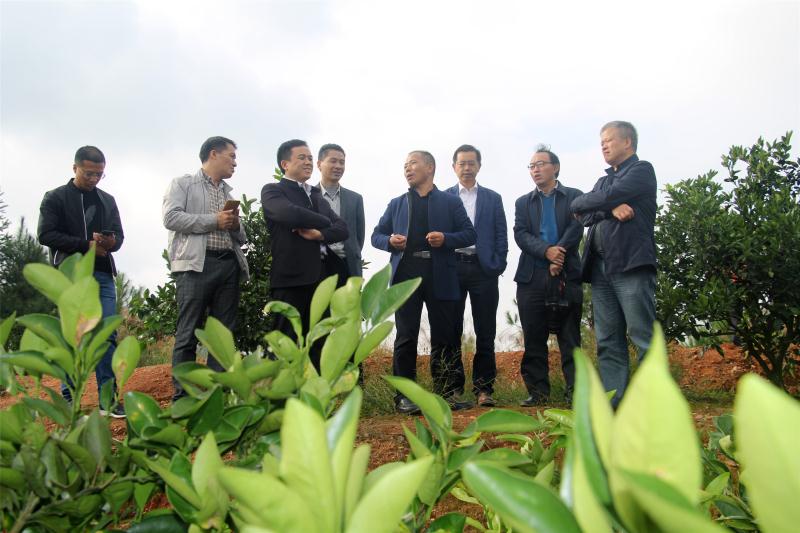 新宁崀山果业有限公司陈锡祥董事长(右四)推广崀山脐橙的绿色无公害种植