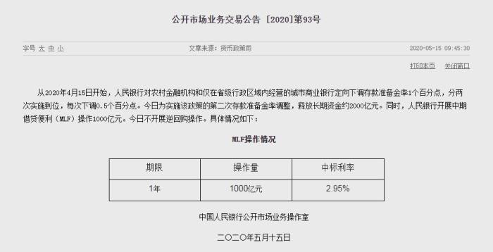 据央行网站消息,从2020年4月15日开始,人民银行对农村金融机构和仅在省级行政区域内经营的城市商业银行定向下调存款准备金率1个百分点,分两次实施到位,每次下调0.