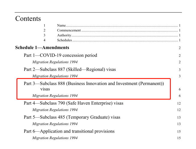 原文:Schedule 1, Part 3 – Subclass 888 (Business Innovation and Investment (Permanent)) visas and the Subclass 188 (Business Innovation and Investment (Provisional)) visas