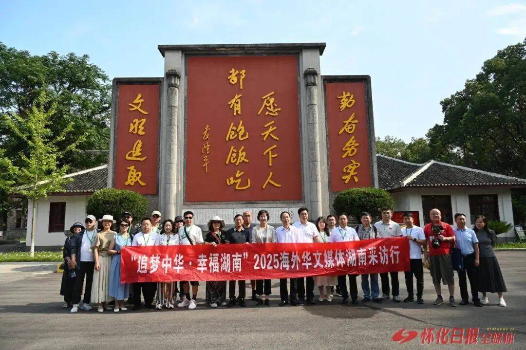 “追梦中华·幸福湖南”2025海外华文媒体湖南采访行走进福地怀化 。 图为媒体团在安江农校合影。