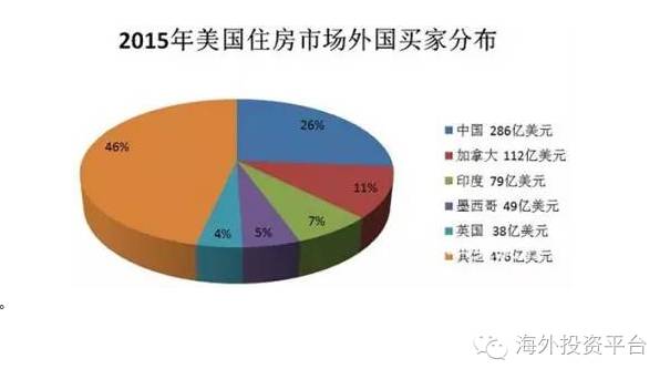 另据美国房地产经纪人协会发布的报告,2014-2015年度,在70多个国家居民来美国购房大军中,中国、加拿大、墨西哥、印度和英国的买家构成了主力。这5个购房军团在美国购买的房地产占所有外国买家的51%,而中国买家在成交额和交易占比两个方面同时超越加拿大,成为外国人中最大的买家。