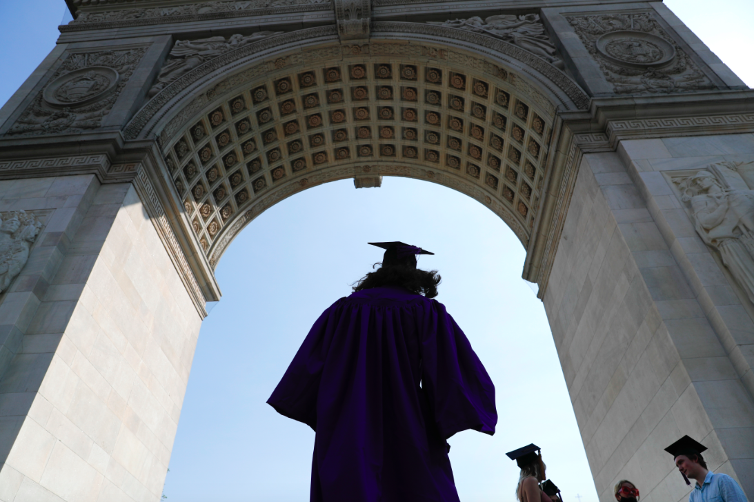 图为美国纽约大学的毕业生在曼哈顿华盛顿广场欢庆毕业时刻2019年11月11日,美国时任驻华大使泰里·布兰斯塔德曾发表题为《美国欢迎中国学生》的署名文章。美国政府