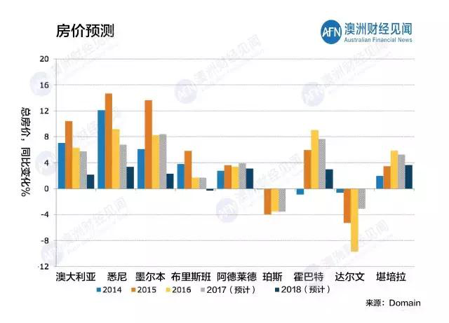 房市15%的高速增长期已经结束。2018年悉尼和墨尔本两地的房价增速或分别为2%和3%。