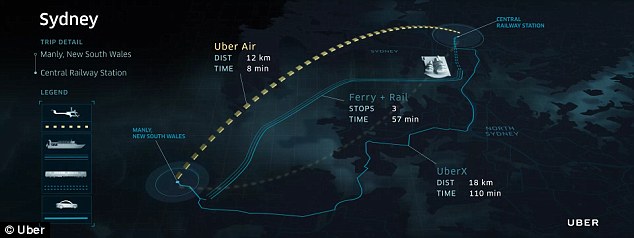 优步还大力宣传了空中优步服务(UberAir)能够带来好处。(《每日邮报》图片)
