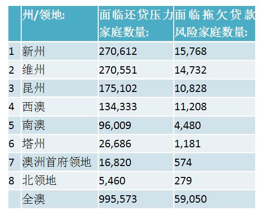受银行提升利率和工资增长缓慢影响,很多澳人家庭被迫拖欠家庭贷款。目前面临还贷压力澳家庭数量已接近百万户。