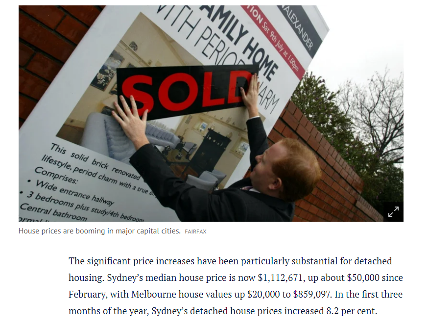 澳洲的房地产价格迎来了30年以来的最快增速,悉尼和墨尔本的房屋中位数更是在一个月内上涨了数万元。