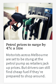 由于零售商提高了汽油价格,墨尔本的有车一族将受到汽油涨价的影响。但如果司机们愿意货比三家的话,还是可以找到便宜的汽油。