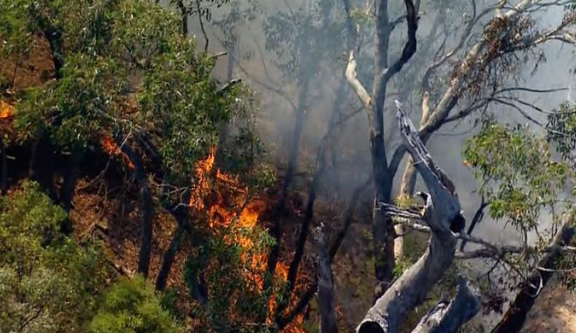 澳大利亚一飞机坠毁后引发丛林大火(视频截图)