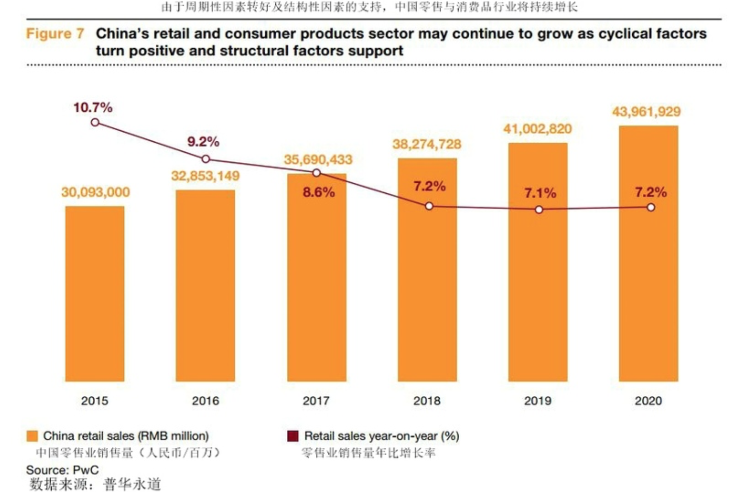 国际会计师事务所普华永道(PwC)最新研报显示,中国的零售与消费品行业正经历着一场惊人的变化,年增长率达7.5%,且截至2020年市场规模将达人民币43万亿人民币(8.8亿澳元)。速度之快、变化之复杂让一些商家措手不及,而导致这种变化的原因主要有3个: