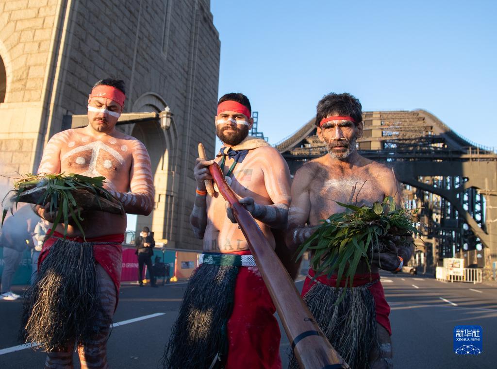 6月25日,这是在悉尼海港大桥上举行传统点火仪式。新华社发(胡泾辰摄)当日,女足世界杯倒计时25天庆祝盛典在澳大利亚地标悉尼海港大桥举行,吸引了超过4000名世界各