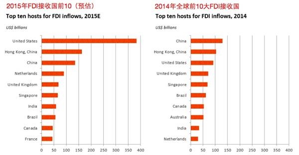 2015年全球范围内外国直接投资(FDI)显著增长,创出金融海啸以来最高水平。值得注意提,资金开始向经济环境稳定的发达国家回流,欧美FDI引资额明显上升,新兴经济体首