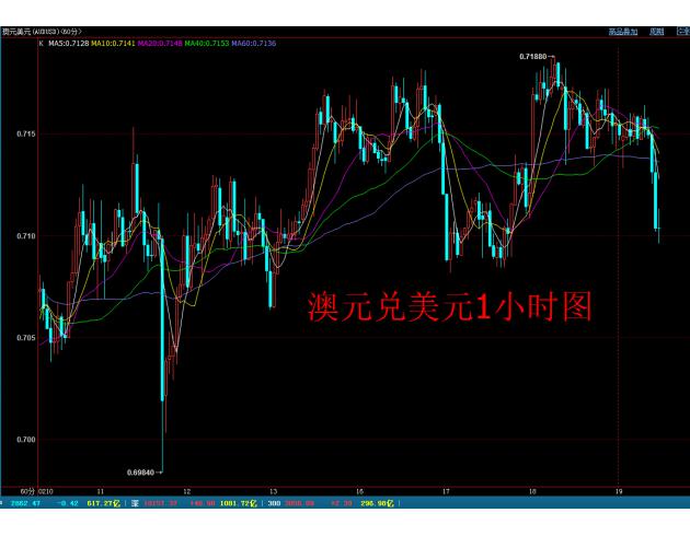 市场避险情绪加上爱德华兹讲话,澳元兑美元小时图上跌破200小时扩展均线关键支撑,一度跌破0.71关口。 目前,澳元兑美元下跌0.84%,日内最低点为0.7097。亚洲股市深