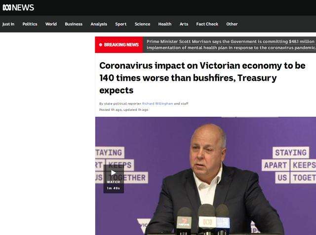 维州政府15日发布一季度财政报告,称政府措施有效抵御了新冠肺炎疫情的影响。财政厅长帕劳斯(TimPallas)表示,疫情给维州带来的经济损失是此前山火危机的140倍。同