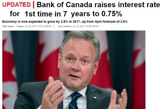 随着加拿大央行本月12日采取行动,七年来首次调涨基准利率0.25%至0.75%,加币币值在14日攀升至14个月未见的最高水平。