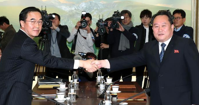 当地时间9日10时(北京时间9时),韩国和朝鲜代表在板门店韩方一侧“和平之家”开始举行高级别会谈,讨论朝方派代表团参加平昌冬奥会、南北关系改善等议题。