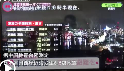 综合日媒报道,当地时间18日晚10点22分左右,日本新潟县村上市发生震度6强(日本标准)的地震。地震引发多地海啸,造成数人受伤,附近核电站未发生异常。