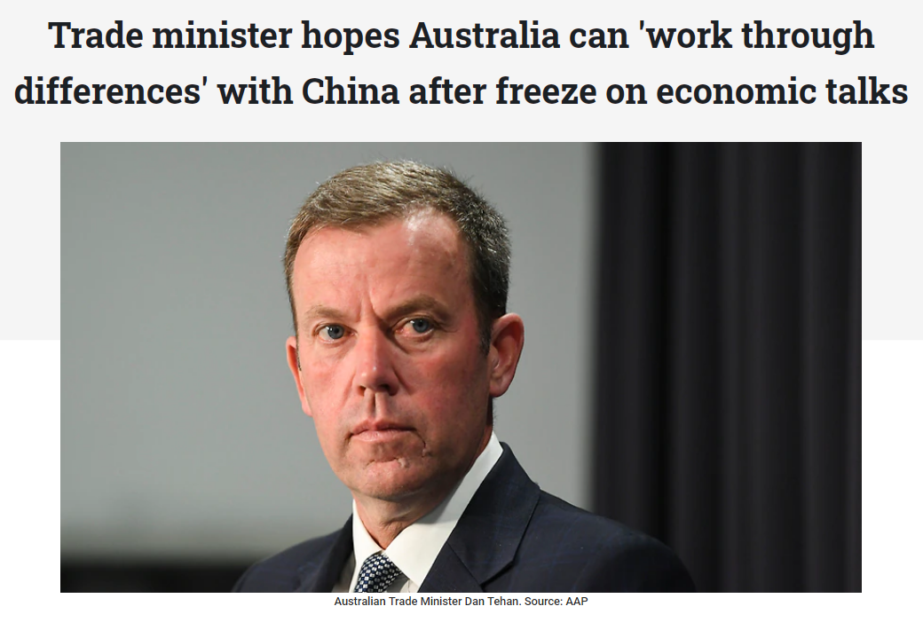 在中国国家发展和改革委员会6日宣布无限期暂停中澳战略经济对话机制下一切活动后,联邦贸易部长特翰(Dan Tehan)7日表示希望与中国进行对话,解决双方分歧。