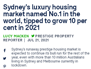 尽管超过1000万居住在悉尼和墨尔本的澳人现在身处封城中,但悉尼失控般的房地产市场预计将在今年剩余时间继续保持其“牛市”趋势。