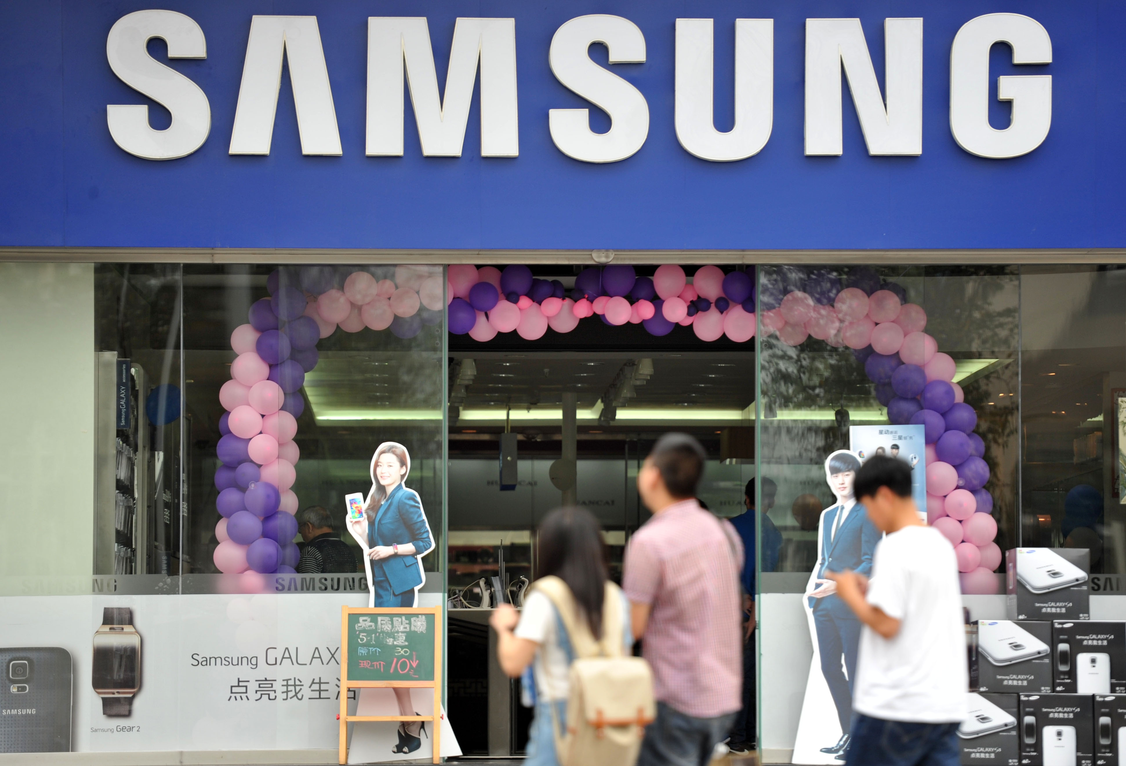 资料图:三星手机专卖店。据韩媒报道,韩国法律界21日消息称,因卷入韩国前总统朴槿惠的“亲信干政”丑闻而入狱的三星电子副会长李在镕有望于8月15日光复节获得假释