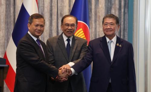 中新社布特拉加亚7月28日电(记者陈悦)柬埔寨和泰国28日在马来西亚布特拉加亚就立刻无条件停火达成共识。柬埔寨首相洪玛奈和泰国代理总理普坦各自率代表团于28日出