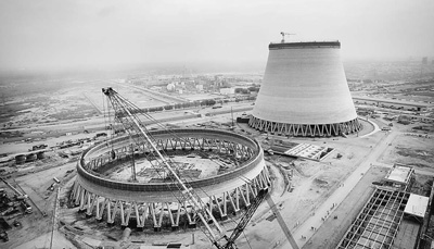 中国企业承建的卡西姆火电站总装机容量为132万千瓦,年均发电量约90亿千瓦时,项目计划于2017年底实现首台机组发电。图为正在建设中的冷却塔。中国电建供图核心阅读