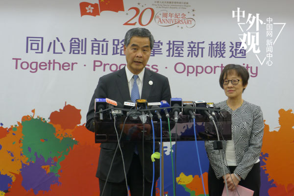 5月15日,香港特别行政区行政长官梁振英就“一带一路”国际合作高峰论坛答记者问。中国网记者李智摄中国网新闻5月16日讯(记者李智戚易斌)5月14日至15日,“一带一路