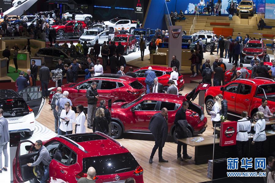 3月7日,在瑞士日内瓦,人们在日内瓦国际车展上参观。第89届日内瓦国际车展7日起正式对公众开放。作为每年最早开幕的欧洲车展,日内瓦车展素有汽车行业“风向标”之