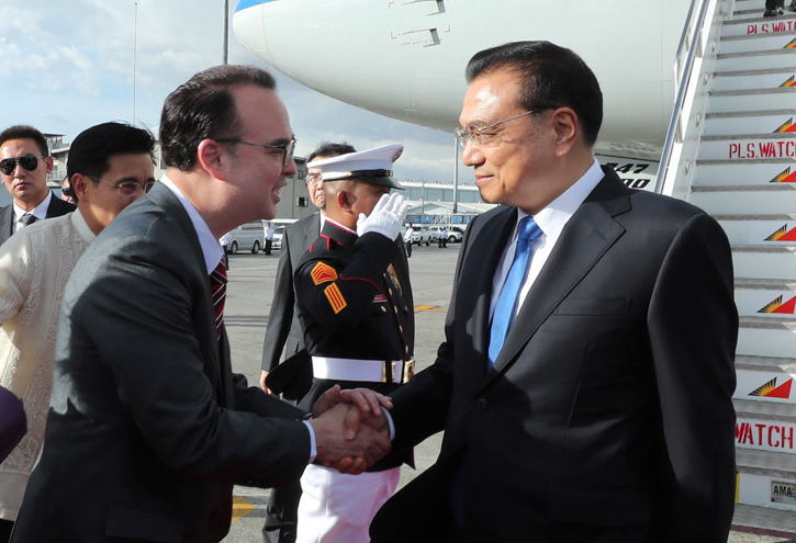 新华社马尼拉11月12日电(记者杨柯 黎藜)当地时间11月12日下午,应东盟轮值主席国菲律宾总统杜特尔特邀请,国务院总理李克强乘专机抵达马尼拉,出席12日至14日在这里举行的第20次中国-东盟(10+1)领导人会议、第20次东盟与中日韩(10+3)领导人会议和第12届东亚峰会,并在与会后对菲律宾进行正式访问。