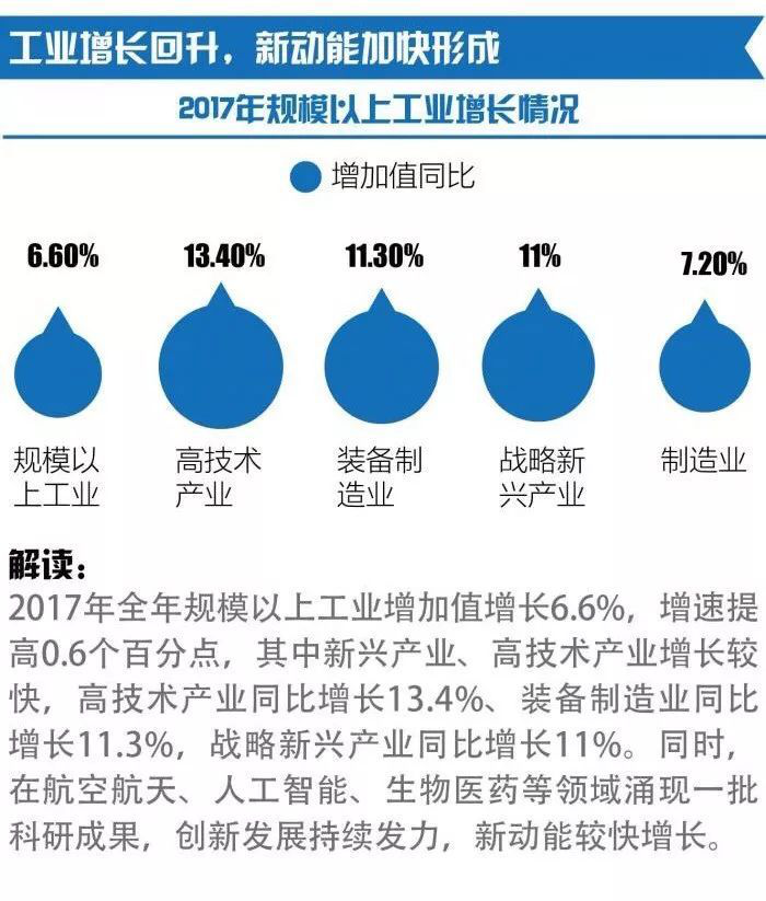 导读:1月18日,国家统计局公布2017年中国经济“答卷”,全年国内生产总值827122亿元,按可比价格计算,比上年增长6.9%,实现了七年来的首次提速。