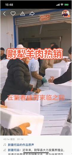何淼通过快手平台给尉犁羊肉带货。