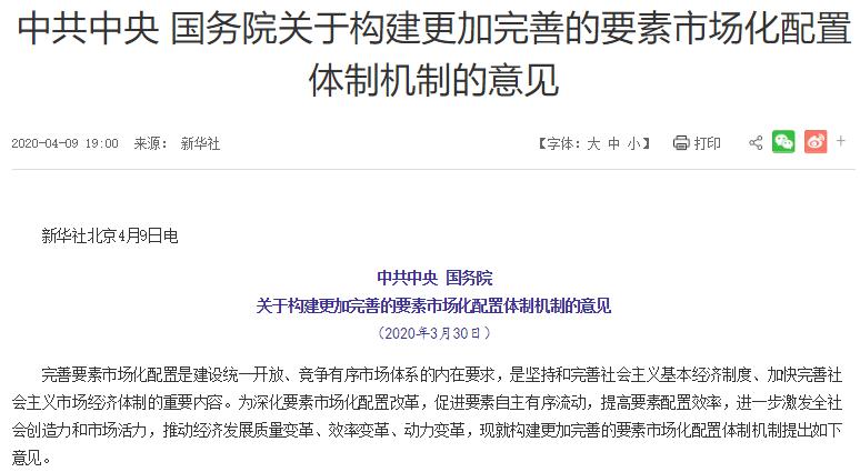 《中共中央、国务院关于构建更加完善的要素市场化配置体制机制的意见》(简称《意见》)4月9日正式公布,这是中央第一份关于要素市场化配置的文件,其中提到要推进资本要素市场化配置,具体包括完善股票市场基础制度,加快发展债券市场,增加有效金融服务供给,主动有序扩大金融业对外开放等四方面内容。