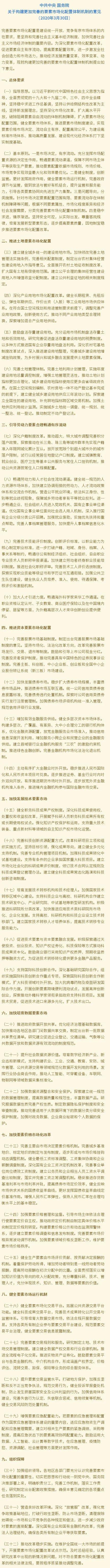 《意见》指出要推进资本要素市场化配置,完善股票市场基础制度,制定出台完善股票市场基础制度的意见。