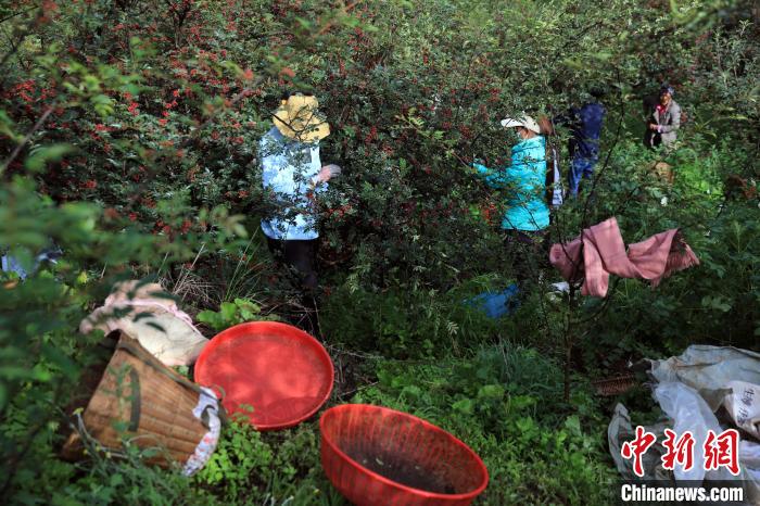 花椒田里,采摘工人正麻利地采摘花椒。 王磊 摄
