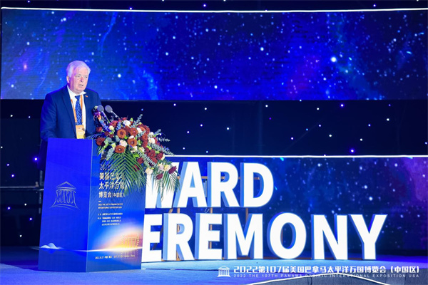 财视澳洲讯|2022年10月27日,第107届美国巴拿马太平洋万国博览会及中国区颁奖盛典在国际自贸港海南海口隆重举行。来自北京、上海、湖南、四川、湖北、安徽、贵州、山西、福建、浙江、广东、深圳、江苏、山东、海南等省市的300多位企业家代表出席了本届博览会。美国巴拿马太平洋万国博览会主席Bruce Bommarito从美国发来视频,祝贺大会胜利召开并圆满成功。
