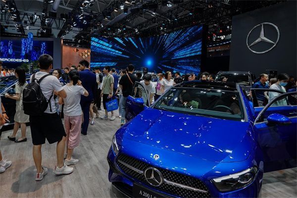 另外,宝马、奔驰分别在3号馆和4号馆包馆展示,每个馆人流量都不少。这次,奔驰展台装饰得很特别,融入更多绿色元素,有种世外桃源的感觉,奔驰大G、AMG系列车型、还有新款奔驰GLC、奔驰GLB等车型都在展台上展出,销售人员忙得不亦乐乎。