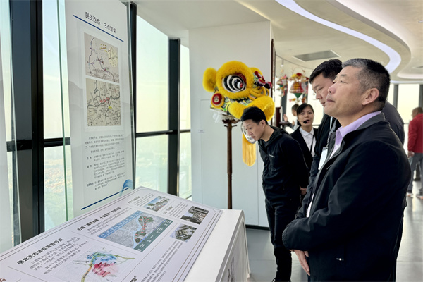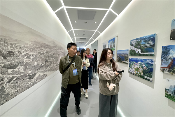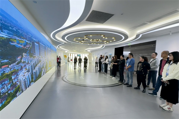 海外华媒采风团走进佛山市狮山镇。图为采风团参访狮山城市空中展厅。 (大公文汇网 记者 李紫妍 摄)
