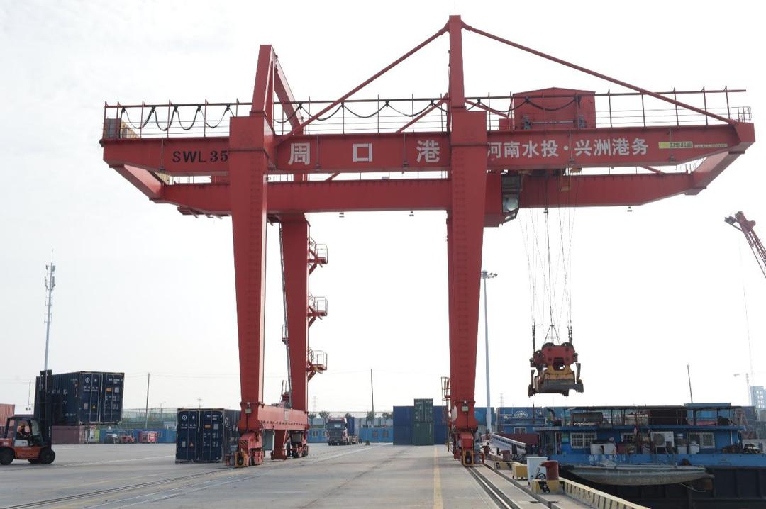 作为全国36个内河大港之一、河南省规模最大的现代化综合港和集装箱港,周口中心港承东启西、连南贯北,货物集散覆盖中西部九省市及多个经济圈。现场工作人员介绍,港口已开通23条国内集装箱航线、17条外贸接力航线,实现“箱通世界、货运全球”。2024年,周口港(含6个作业区)货物吞吐量达5205.6万吨,占全省85%以上;集装箱吞吐量16.3万标箱,同比增长54.7%,亮眼数据印证了其在内陆物流体系中的核心地位。