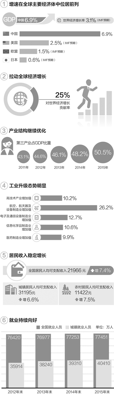 “高”——中国经济6.9%的增速在世界上一枝独秀。