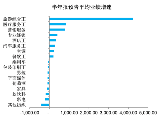 从中报业绩预告中分行业的收入增速看,新旧行业分化明显,垫底的纺织服装、机械设备、食品饮料、家用电器和采掘五个行业均为“老经济”行业,也仅有这五个行业平均业绩增速出现负增长。